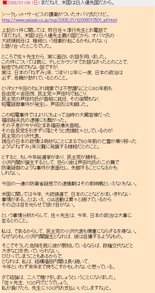 で日本の媚米保守に至っては、9/11同時多発テロの犠牲者には多くの法人が含まれる、これは人事ではない、ちゅうよなアホなこと言うわけだが、ありゃアメリカの主権に対する侵犯行為ではあっても日本の主権侵犯ではないわけでね、同じく邦人が犠牲者になっている事件であり、我が国の主権に対する侵犯行為である北朝鮮がやった拉致問題に関しては些か歯切れの悪い連中がこういうことをシャアシャアと言うわけさ。